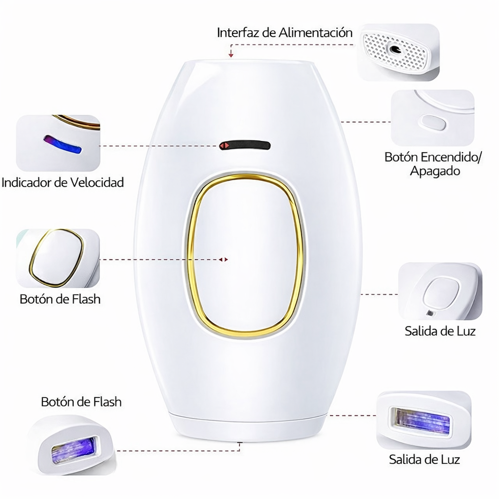 - ✨ Depilación permanente e indolora con tecnología de Luz Pulsada Intensa (IPL).