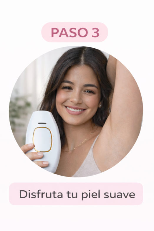 Gracias a su tecnología de Luz Pulsada Intensa (IPL), debilita progresivamente el vello desde la raíz, ayudando a reducir su crecimiento de forma duradera.